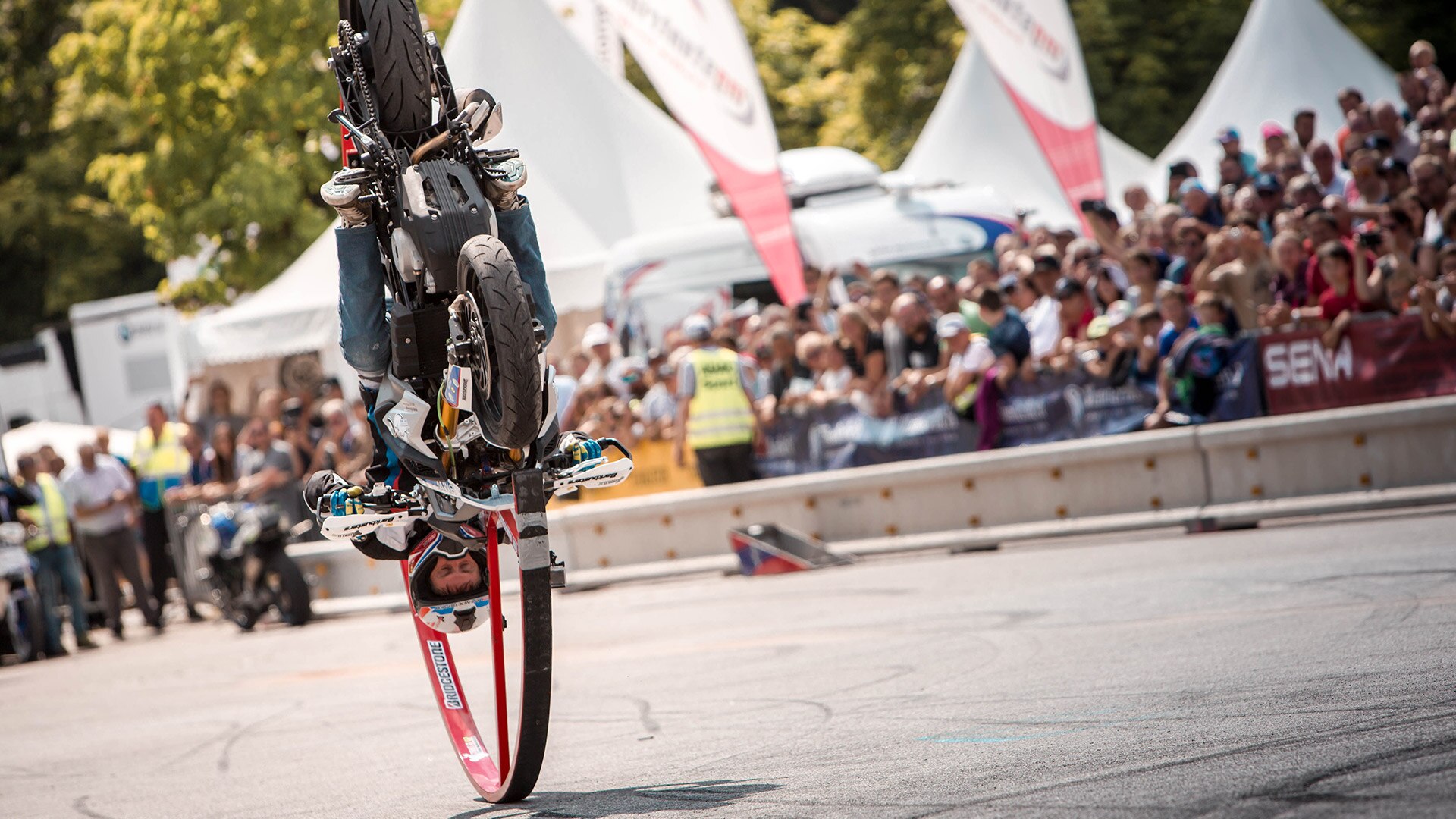Thunderous applause for such steady-handed artistry. Stunt riders Mattie Griffin (Republic of Ireland) and Dirk Manderbach (Germany) took their bikes to the limit – even on wet asphalt – dazzling the audience with their top-notch Street Bike Freestyle Show. The duo took turns showing the crowd their backward burnouts, rolling stoppies, wheelies, bike surfing and front flips – tyres screeching all the time. No one wanted this show to come to an end!