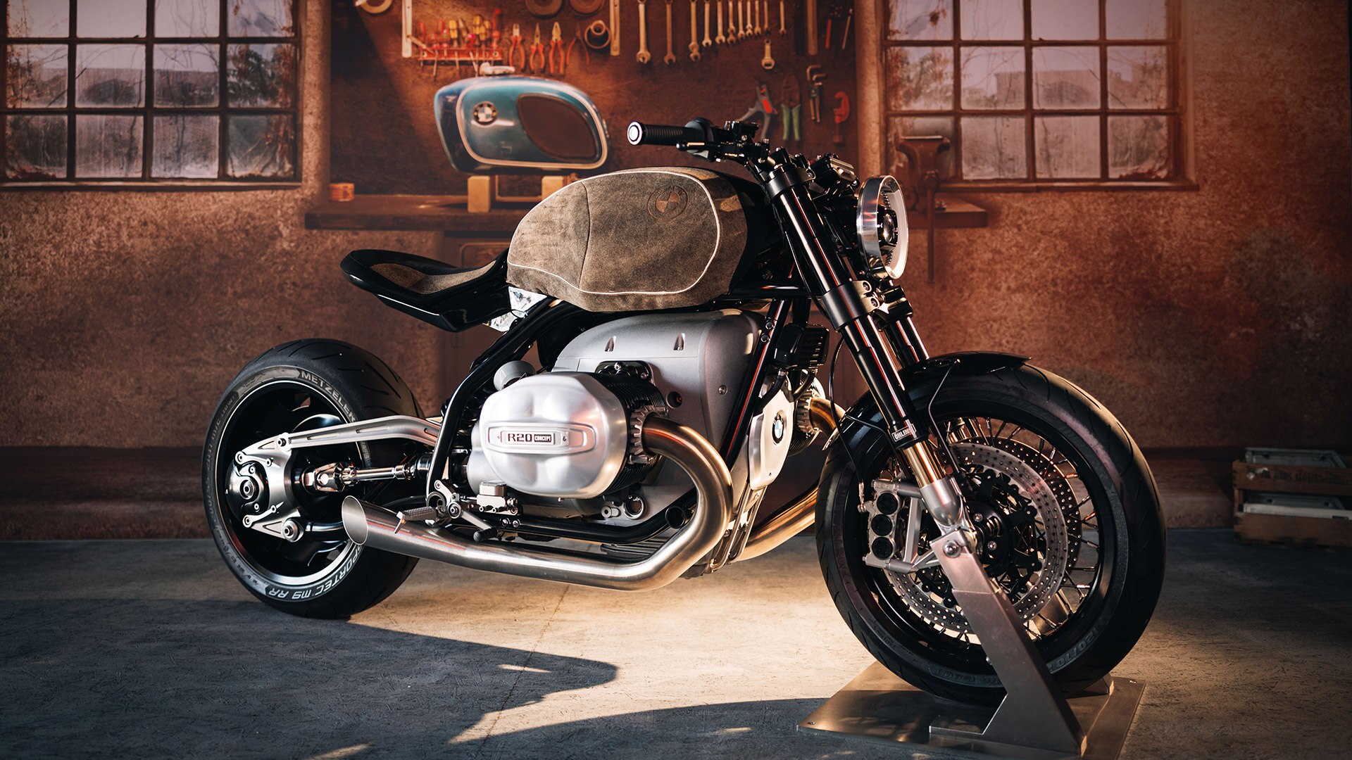 Il était inévitable de présenter le véhicule concept le plus enthousiasmant de l’année aux BMW Motorrad Days. La BMW R20 concept rappelle les BMW légendaires des années 1930 avec son design rétro puissant, tout en offrant les technologies les plus modernes et des performances d’avant-garde. La R20 concept se présente sous ses plus beaux atours pour célébrer le retour des BMW Motorrad Days à Garmisch-Partenkirchen : le réservoir arbore un superbe cuir de daim de la société Meindl Fashion, qui rappelle le look des pantalons en cuir typiques.
