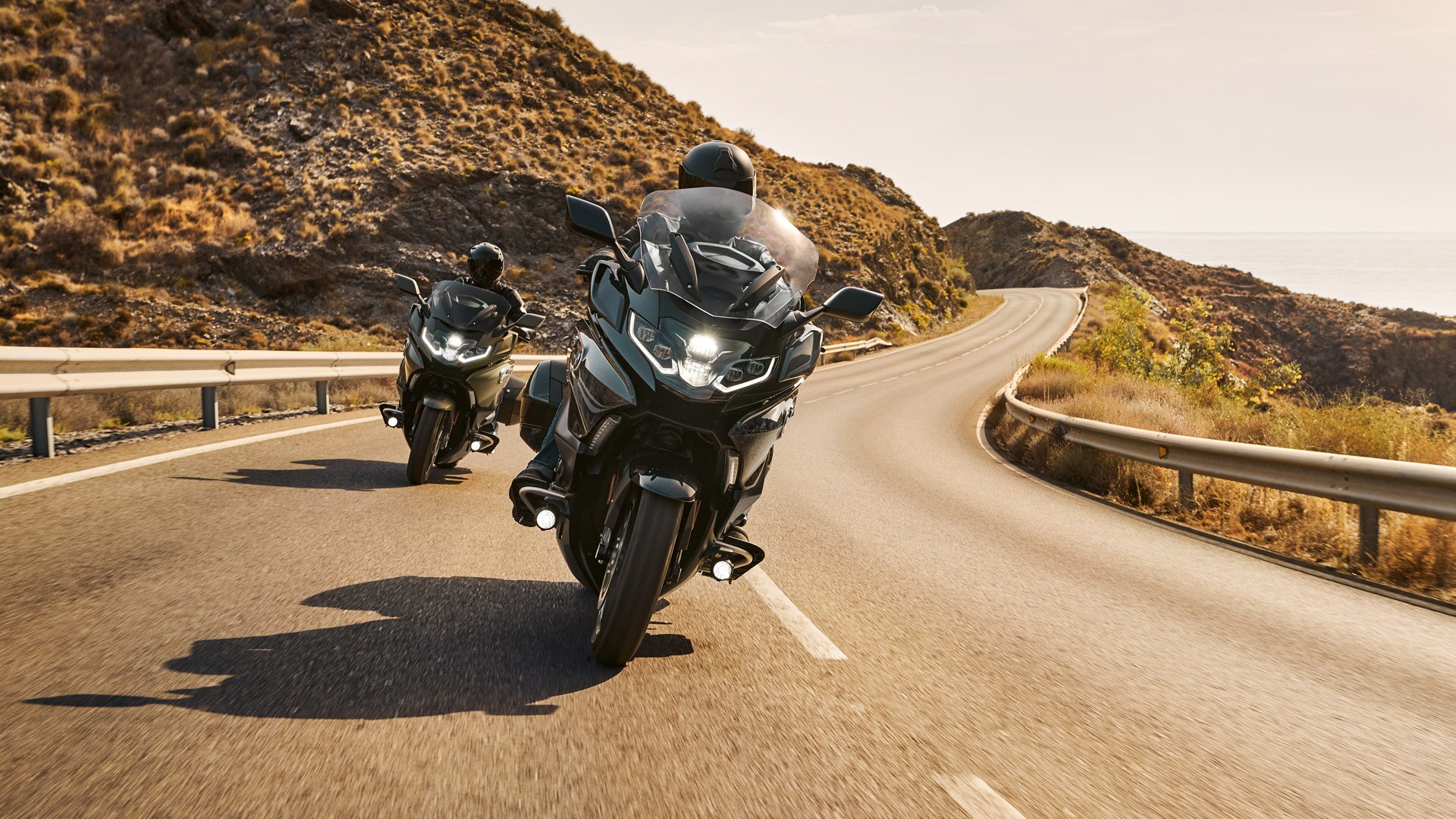 De motor van de K 1600 Grand America werkt graag voor twee. Daarbij luistert deze zo nauwkeurig en superieur naar je commando's dat je in elke bocht en op elk recht stuk al de voorpret van de volgende keer voelt: Zo voelen legendarische soevereiniteit, loopcultuur en performance aan. Dankzij de nieuw ontworpen motorbesturing kom je nu nog sneller bij het gas- en geluksgevoel: het vermogen van 160 pk is nu al ruim 1000 tpm. vroeger beschikbaar en het tot 180 Nm verhoogde maximale koppel bedraagt 5.250 tpm. Zo laat je het landschap met een draai in je pols aan je voorbijtrekken. De vollere koppelcurve garandeert daarbij een nog ontspannener voortglijden. Waarbij de motorsleepregeling (MSR) en de Dynamic ESA voor de nodige stabiliteit en veiligheid zorgen. En zelfs de rijmodi zijn nu nog duidelijker afgetekend. Voor merkbaar meer rijplezier – alleen of voor twee.